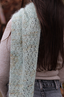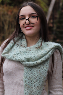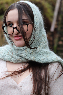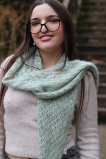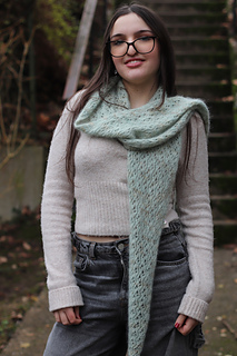 Its simple, repetitive motif is easy to memorize, allowing for a smooth and calming knitting flow, perfect for quiet evenings. The shape wraps just enough to warm the neck or softly highlight a neckline with a delicate touch.