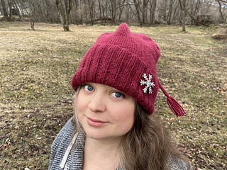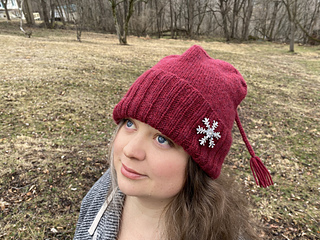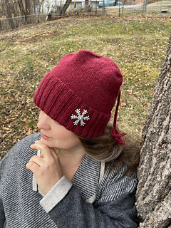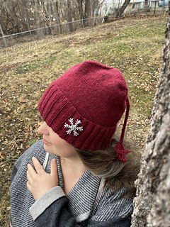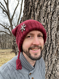 My take on the Melt the Ice Hat is a comfy slouch hat made out of a lofty chained wool/alpaca yarn blend. This hat is light, yet warm. It is not the tiniest bit itchy, but instead incredibly soft and luxurious.