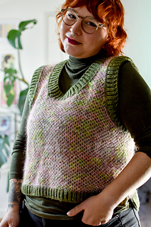 A sweater vest in fluffy Honeycomb Brioche.