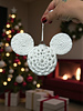 This beautiful crochet Mickey ornament is a stunning addition to your Christmas tree. It also doubles as a very special bow on the gift to your favourite person. These are popular market sellers.
