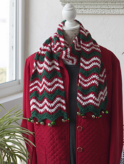 The Merry Scarf will catch everyone’s eye when you arrive, and they will hear you too. There is a playful jingle bell edging. The chevron stitch adds dimension and colors, using three common holiday colors. You can make another in your favorite colors or team colors.
