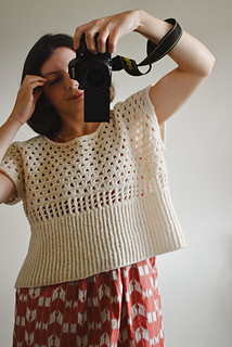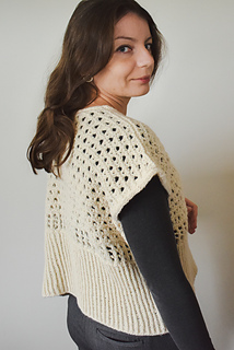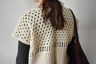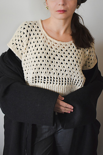 The Mesh Sweater Top is a great layering piece for any season. It’s worked seamlessly from the top down using a drop-shoulder construction.