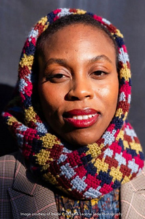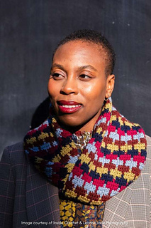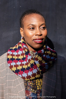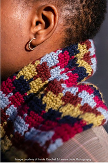 The cowl is worked in a continuous spiral and finished off by adding a full 360° twist to the fabric tube before mattress stitching the two ends together.