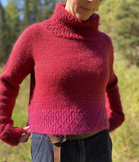 Measurements given are for the finished garment. The sweater is designed to fit with about 10” / 25 cm of positive ease at the bust, less for larger sizes. Photos show size 2 on a 38” / 96.5 cm bust model.