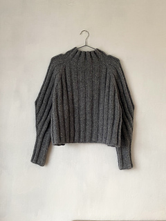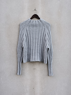 The Midnight Jumper is a cropped, elegant knit featuring a soft short turtleneck and long, gently tapered sleeves. It is worked seamlessly from the top down in a structured Rib stitch pattern (k3, p3), which creates a beautiful, natural narrowing effect along the sleeves.