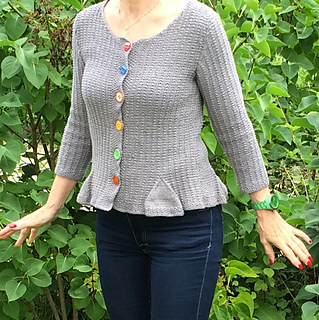 Ett gammaldags livstycke inspirerade till midsommarkoftan. Den är stickad i skön, luftig bomull och kan bäras utan linne eller blus under, om man så önskar. Det ribbade mönstret och de fem kilarna nedtill gör att koftan formar sig fint efter figuren.