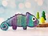 Our finished Mini Chameleon project is 6.5” x 10” using the recommended hook size. You are welcome to go up or down a hook size to create a different dimension. You can even hold two pieces of yarn together with a larger hook to create a giant cuddler. The sky is the limit!