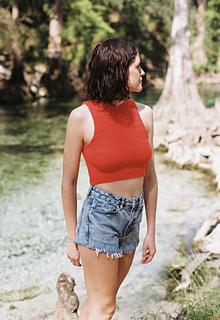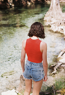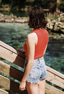 This design is knit seamlessly from the top down with shoulder short row shaping. Stitches are picked up for the neckline finish.
