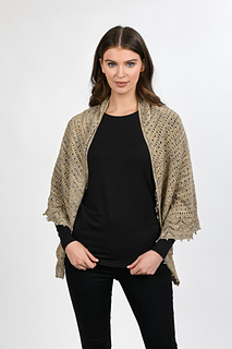 Completed shawl measures 81½in/195cm across upper edge and is 28¾in/88cm deep.