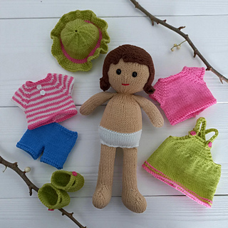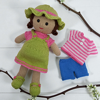 Delia is a simple, approachable doll pattern—perfect for beginner knitters—and her clothes are made with minimal seams for easy assembly.
