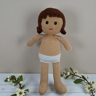 Both Delia and her clothes are knitted flat using straight needles. Her underwear is cleverly knitted in (so there’s nothing to lose!), and her hair is knitted and sewn into place for a neat finish.