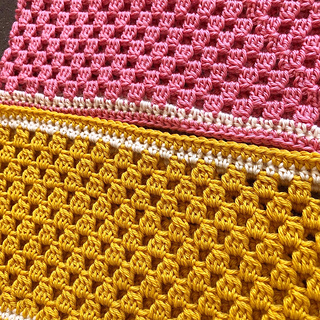-Caron Simply Soft (100% acrylic; 315 yards/288 meters; 6 oz/170 grams per skein): 1 skein MC and 1 skein CC for one cowl; colors Strawberry and Off-White