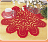 Red doily with Bruges crochet.