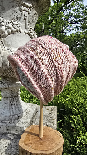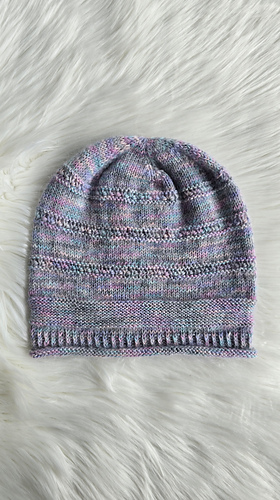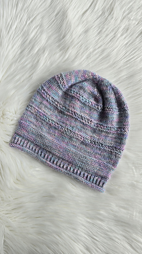 Using a basic foundation, there are decorative bands spaced throughout that the knitter can change up. Choose to knit 2 bands for a slouchy style, or 3 bands for an ultra slouchy style. Each decorative band is short enough to insert small stitch patterns, so mix and match to make each beanie one-of-a-kind.