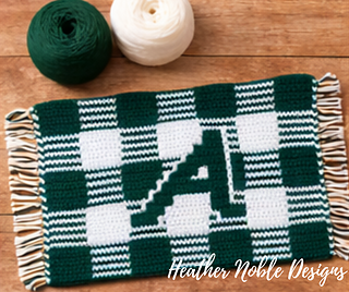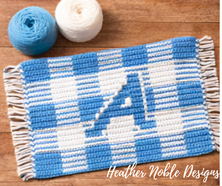 This placemat is quick to work up and a Level 1-Easy design (uses basic mosaic overlay crochet stitches SCBLO and DCFLO – no angled stitches). There are optional instructions included in the charts for a 3rd color (tapestry technique) to really make the monogram pop!