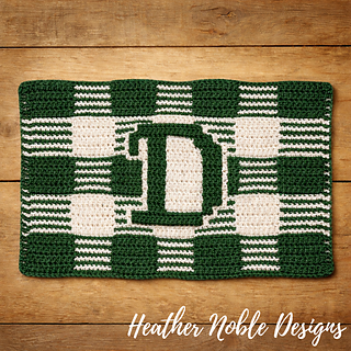 This placemat is quick to work up and a Level 1-Easy design (uses basic mosaic overlay crochet stitches SCBLO and DCFLO – no angled stitches). There are optional instructions included in the charts for a 3rd color (tapestry technique) to really make the monogram pop!
