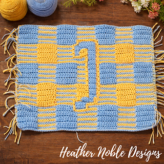 This placemat is quick to work up and a Level 1-Easy design (uses basic mosaic overlay crochet stitches SCBLO and DCFLO – no angled stitches). There are optional instructions included in the charts for a 3rd color (tapestry technique) to really make the monogram pop!