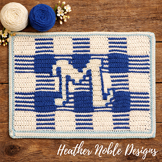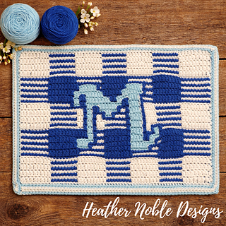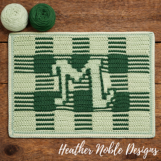 This placemat is quick to work up and a Level 1-Easy design (uses basic mosaic overlay crochet stitches SCBLO and DCFLO – no angled stitches). There are optional instructions included in the charts for a 3rd color (tapestry technique) to really make the monogram pop!