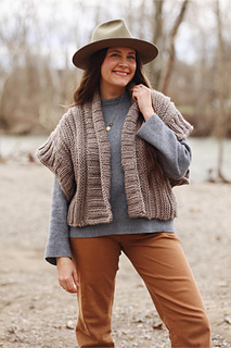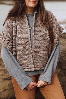 This sister pattern to the super bulky Mont Blanc Cardigan has all of the features of the original in a lighter weight form. Uneven ribbing and side-to-side construction brings a unique touch to the boxy shape that makes this such an easy-to-throw-on topper. It will quickly become your favorite layering piece and a go-to for any ensemble.