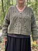 The cardigan is knit from the top down, starting with the back shoulders. The shoulders are shaped with short rows. The Right and Left Fronts are picked up along the cast on edge of the Back shoulders, then knit downward with should row shoulders and V-neck shaping worked at the same time, all shown on the charts. The Fronts and Back are then joined in one piece and worked downward to the hem. Sleeves are picked up at each armhole and worked down to the cuff, in the round.