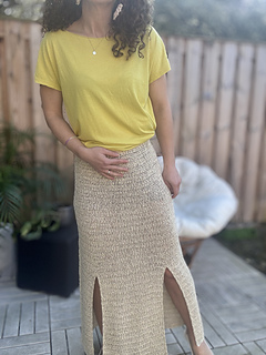 The Morning Light Skirt is a lightweight crochet skirt worked top-down with a subtle A-line shape.