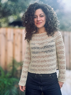 The Morning Light Top is a lightweight crochet top worked top-down using a round yoke construction.