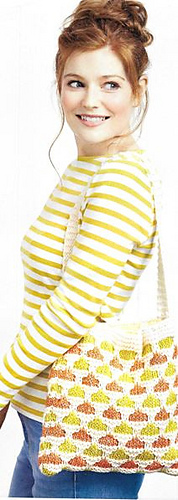 If you have not yet tried mosaic knitting, give it a go with this easy bag, as this dazzling tessellated design is created working a stripe and slipping stitches on the next row. Forget bobbins at the back or working with more than one strand along a row, just knit, purl and slip your way to success. Line the bag with a fresh coordinating cotton fabric and put a spring in your step when you next pop to the shops.”