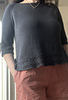The model in the photograph above has a 38 inch or 96.5 cm chest and wears a size M. The sample is knit in Sandnes Garn Line {53% Cotton, 33% Rayon, 14% Linen / Flax} (colorway 6080 - Note: the color is black although it looks blueish on the pattern photos)