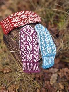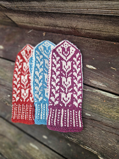 My Tulip mitts is a lightweight stranded-colorwork mitten with a thumb gusset. A perfectly balanced weight, inspired by the first blooms of spring.
