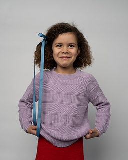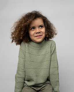 Mykines Pullover for children is designed with a pattern consisting of simple knit-and-purl textures – double seed stitch and broken rib in wide stripes. This version is knitted in our soft Wool Cotton yarn, which is warm and gentle against the skin.