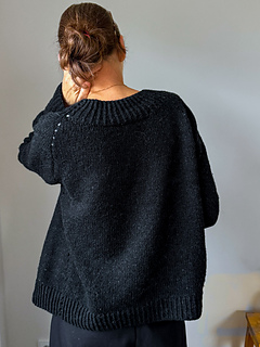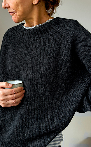 NAiMA Pullover DK is worked seamlessly from the top down. After the collar is done, the neck is shaped with short rows. Then you work the yoke with raglan and radial increases down to sleeve separation. The sleeve stitches are then placed on hold, underarm sts are cast on, and you continue to work the body to the ribbing. After the body is completed, the sleeve sts are picked up again to work the sleeves top down in the round to the end.