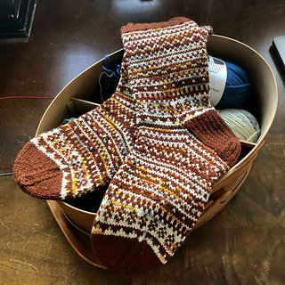 Having recently designed a pair of socks specifically with my husband in mind (Papa’s Favorite Socks), I decided to design a pair with my own favorite features. We called our grandmothers Nana when I was growing up, so that’s the name my grandchildren call me! I love an overall colorwork pattern, so we can tick that box, but I didn’t want to be glued to a complicated chart when knitting, so I kept the pattern repeats to 2 or 4 stitches with frequent one-color rounds and worked the entire sock in just 2 colors. This helps keep the colorwork sections a bit more flexible as well. Another plus—if you use 2 100g skeins, you can get 2 pairs of socks by switching the main and contrast colors. I really love the way the multi-color Mondim yarn works in this pattern, but 2 solid colors would also look great! I am very happy with my new socks!