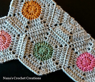 • Hexagons require approx. 24 - 26 yds of yarn total. (6 yds for the circle & 18 - 20 yds for the rest)
