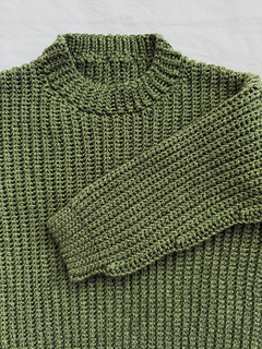 This knit-look pullover is a wardrobe essential. Although it’s crocheted, the fabric mimics a knit fisherman’s rib, and the silhouette is as classic as it gets. The simplicity of the design is refined with shaped shoulders, short row shaping on the sleeves, and an applied ribbed neckband to polish it off.