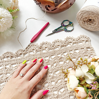 The soft neutral tone adds a classic charm, while the intricate stitchwork highlights the beauty of the yarn. Ideal for confident beginners or intermediate crocheters.