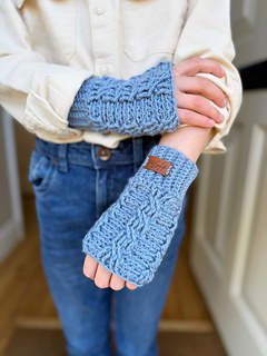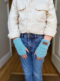 Worked from the bottom up and seamlessly in the round, this fingerless wrist warmers crochet pattern uses small, manageable cable repeats to create a comfortable, flexible fit. Available in three sizes — Toddler/Child, Teen/Small Adult, and Medium/Large Adult — they’re perfect for gifting, layering, or everyday wear.