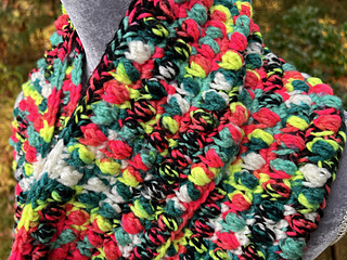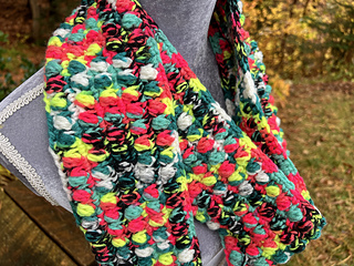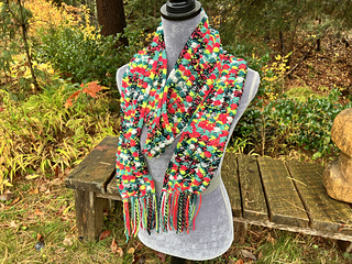 Created a punch of colour with Caron Smash Cakes with an easy repeating pattern. Fun colours to play with and the fringe is really cute, too!