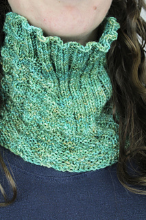 The Nephrite cowl draws inspiration from that geological alchemy. What begins as a simple rib evolves through a shifting knit/purl check pattern, creating subtle movement and texture reminiscent of layered stone. The result is a piece that feels both grounded and refined—uncomplicated to knit, yet striking to wear.