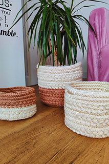 Bring beauty and organization into your home with these modern crochet nesting baskets! This digital crochet pattern will guide you through creating three basket sizes using the stunning and textured wheat stitch — perfect for holding yarn, toys, toiletries, or anything in between.