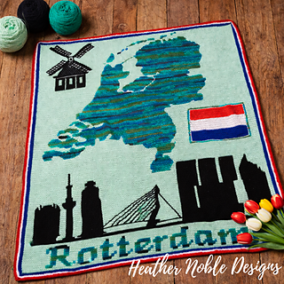 Netherland enthusiasts, crocheters, this blanket design is for you! This mosaic overlay crochet pattern is perfect for showing your love of your homeland. The windmill, Rotterdam skyline, and Netherland flag are all featured in this pattern. This blanket will be a cherished gift for years to come!