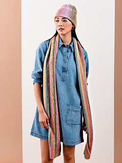 Nevali is a sweet beginner-friendly hat and scarf set that beautifully highlights the long color runs of silky soft Gianna yarn. The scarf is very simple to knit, worked from one long edge to the other in garter stitch and the hat is also knit flat, using short rows to shape the crown.