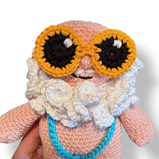 Arms, mankini, beard, ears, hat, and sunglasses are worked separately and sewn on