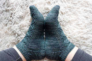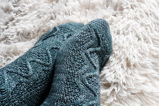 Step into the quiet beauty of Nightshadow, a sock pattern shaped by movement and shadow. Elegant cables rise along the front of the foot and trail up the back of the leg, their paths softened and defined by textured panels that invite the eye to linger.
