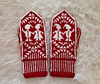 Vanten på bilden är stickad i Rauma 3-trådigt strikkegarn.