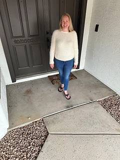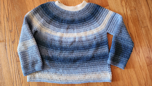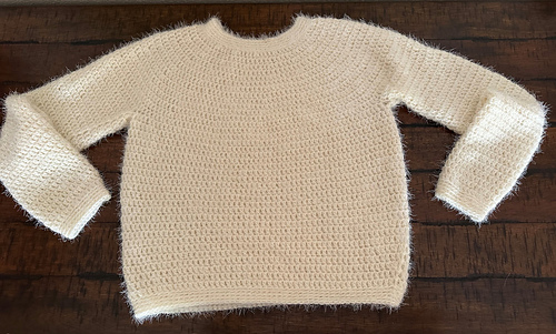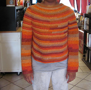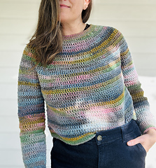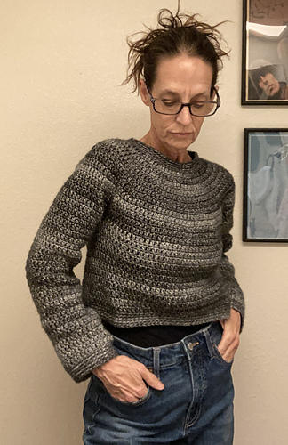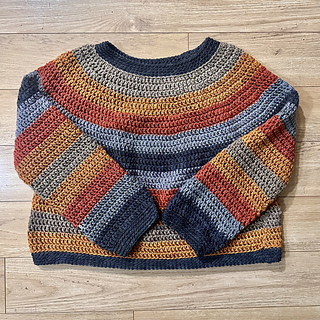 Sweater worked in one pieces from the top down: Yoke (Rounds), Torso (Rounds) Sleeves (Rounds), Yoke Border (Rounds).