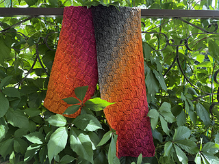 Noita (finnisch für Hexe) ist ein gehäkelter Schal mit einem markanten diagonalen Farbverlauf und einer ausdrucksstarken Struktur, die an Flammen, Rauch und uralte Muster erinnert.