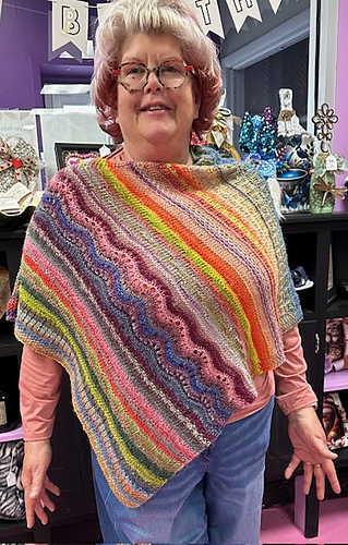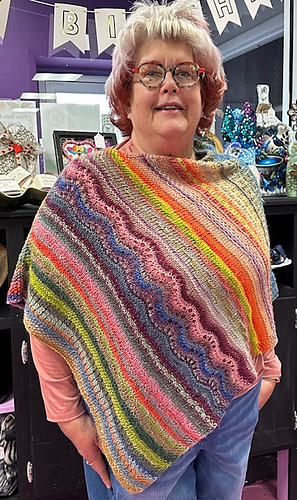 It’s an easy knit, with uncomplicated stitches and a good choice for social knitting, or to take along on a trip. You’ll be enchanted by the beautiful colors of this yarn, although any light worsted or dk weights will work with the pattern.