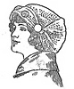 This turban has the unusual advantage of going on and off without mussing the hair. The band is placed across the forehead, the ends are crossed in the back and buttoned to the band.