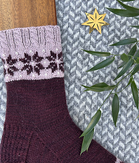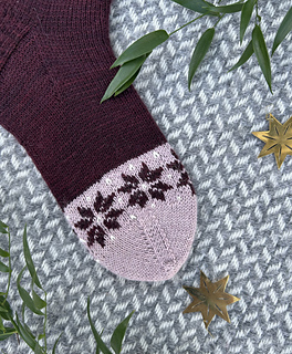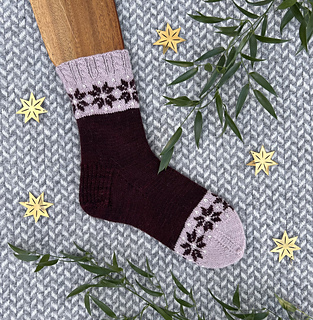 Novent are a pair of cuff down knitted socks with colorwork and a reinforced heel. The length of the sock is easily adjustable by knitting the sock as long as preferred.