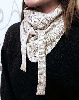 The Nux scarf is knitted flat, and its structure is both beautiful and thoughtfully designed. The work begins with a tie band worked in double knitting, giving the scarf a polished and practical finish. After the band, stitches are increased along one edge, allowing the scarf to widen to the desired size. Decreases are then worked along the same edge, shaping the scarf into a balanced and elegant whole. Finally, a second tie band is knitted to complete the cohesive look. The edges are worked simultaneously as you knit, resulting in a neat finish without extensive finishing work — you’ll achieve a beautiful and refined scarf effortlessly.
